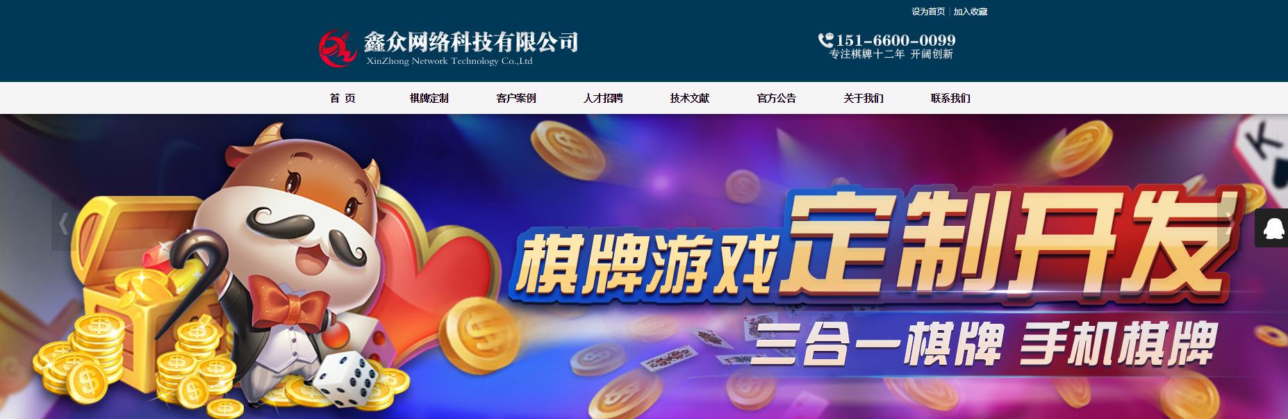 青島鑫眾網(wǎng)絡(luò)科技有限公司成立于2006年3月,是一家專(zhuān)業(yè)從事網(wǎng)絡(luò)棋牌游戲軟件定制、開(kāi)發(fā)、銷(xiāo)售及技術(shù)支持的高科技軟件技術(shù)公司。核心技術(shù)人員具有五年以上專(zhuān)業(yè)棋牌開(kāi)發(fā)經(jīng)驗(yàn),開(kāi)發(fā)速度在國(guó)內(nèi)一流,可根據(jù)客戶(hù)需求定制游戲產(chǎn)品和服務(wù)。自成立以來(lái),我們一直以追求一流的技術(shù)和服務(wù)為目標(biāo),并始終處于高速、穩(wěn)定的發(fā)展?fàn)顟B(tài)。在銷(xiāo)售方面,技術(shù)人員具有成功開(kāi)發(fā)國(guó)內(nèi)知名棋牌游戲站點(diǎn)的經(jīng)驗(yàn),對(duì)于整個(gè)棋牌游戲市場(chǎng)有著深刻的認(rèn)識(shí),并有著強(qiáng)大的市場(chǎng)資源。公司產(chǎn)品的銷(xiāo)售量遙遙領(lǐng)先,包括臺(tái)灣、香港、澳門(mén)等地區(qū)。同時(shí)我們的產(chǎn)品也遠(yuǎn)銷(xiāo)國(guó)外日本、韓國(guó)、美國(guó)、法國(guó)、新加坡、烏克蘭、德國(guó)等多個(gè)國(guó)家。